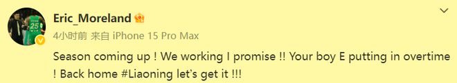 莫蘭德還承諾,自己會(huì)更加努力地投入到訓(xùn)練中,很想和遼籃的兄弟們一道,再次向CBA總冠軍發(fā)起沖擊。