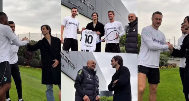 這場邂逅的伏筆早已埋下。幾天前擊敗德米納爾后,穆塞蒂在鏡頭前寫下的 “Fino alla fine”(直到最后),將尤文球迷的身份烙在世界網壇的聚光燈下。這句貫穿尤文百年歷史的精神圖騰,恰是他失利后最需要的心靈鎧甲。當他走進訓練基地,斯帕萊蒂主動上前的握手、球員們熱情的寒暄,早已超越普通的跨界互動 —— 這是同處競技壓力下的伙伴間的默契。?